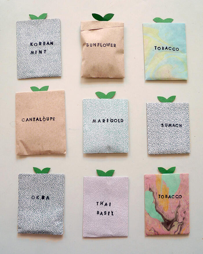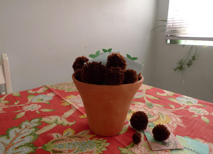 seeds i saved in envelopes i made in a pot i made filled with pompoms i made :~)