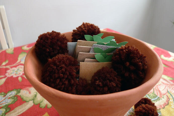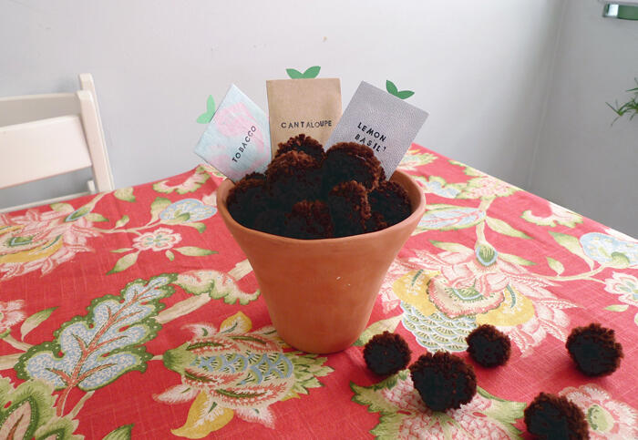 seeds i saved in envelopes i made in a pot i made filled with pompoms i made :~)
